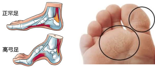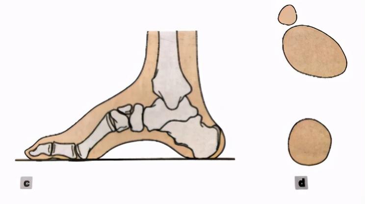 (图片说明:左侧为高弓足,足弓明显增高,足底与地面接触面积显著减少)